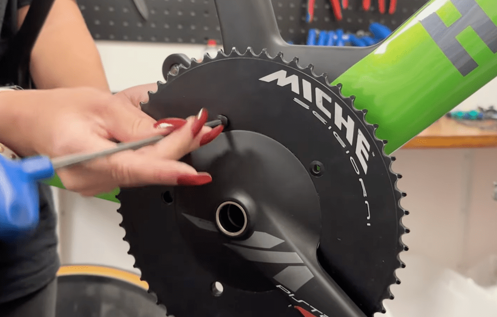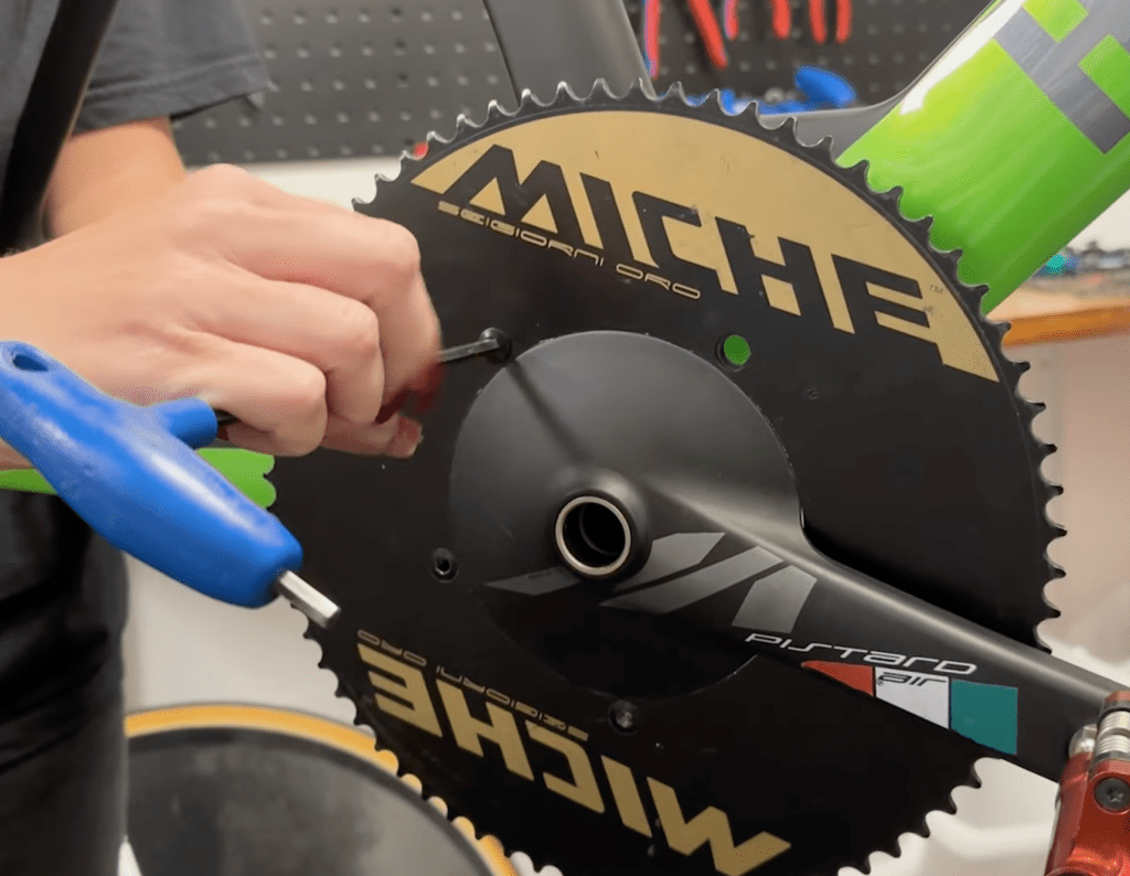 ⚠️ Note: one bolt in Miche’s cranckset is hidden behind the crank arm - Remove the chainring